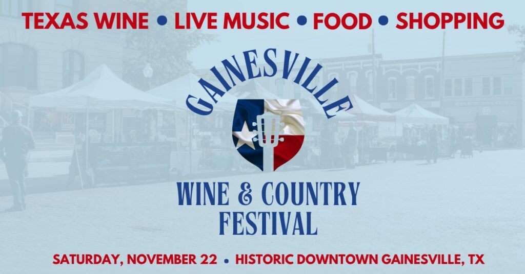 Get ready to experience the heart and soul of Texas Wines on Saturday, November 22, 2025, when Historic Downtown Gainesville welcomes local Texas wineries, food, and artisans.
